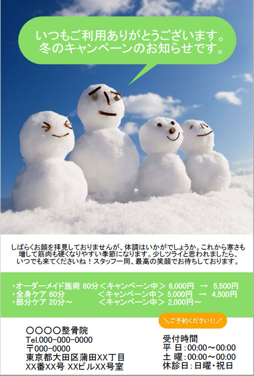 冬のキャンペーン1規定サイズ ¥70円(税抜)¥77円(税込) -
