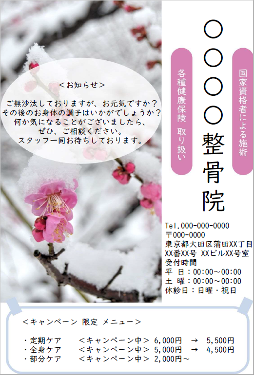 春のご案内規定サイズ ¥70円(税抜)¥77円(税込) -