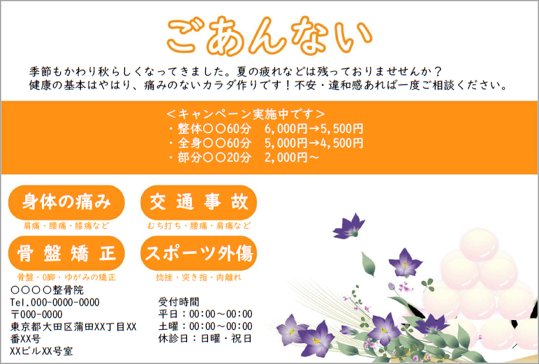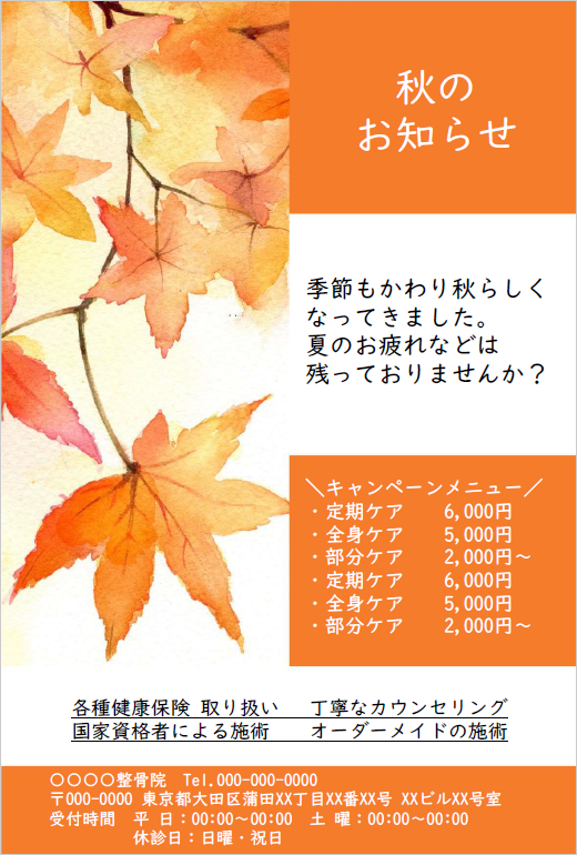 秋のお知らせ規定サイズ ¥70円(税抜)¥77円(税込) -