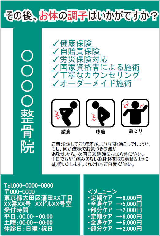 施術、治療法3規定サイズ ¥70円(税抜)¥77円(税込) -